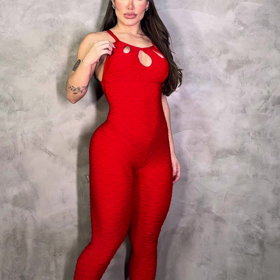 Make a striking impression with the Scrunch Booty Red Wave Front Detail Jumpsuit. Its bold red wave design is elevated by unique front detailing that adds an extra layer of style. The scrunch feature enhances your curves for a flawless fit, blending confidence and comfort effortlessly. Perfect for energizing your workout or turning heads on the go.