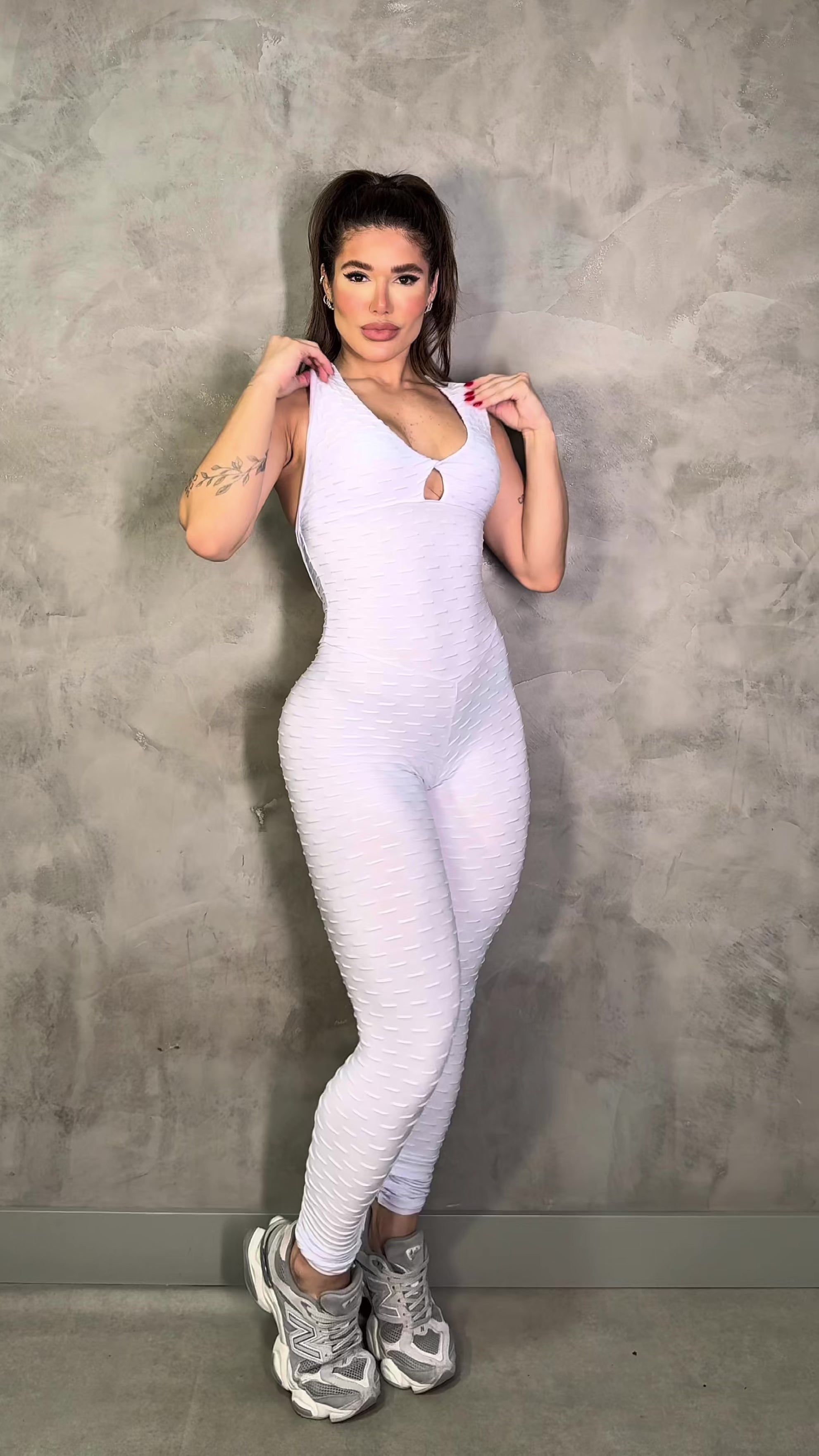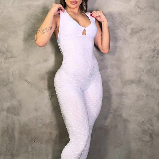 Elevate your look with the Scrunch Booty White Wave Rings Jumpsuit. Featuring a crisp white wave pattern enhanced by stylish ring accents, this jumpsuit sculpts your curves with its flattering scrunch design. Combining fashion-forward details with comfortable support, it’s perfect for both active days and chic casual wear.